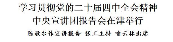 按照黨中央統(tǒng)一部署,學(xué)習(xí)貫徹黨的二十屆四中全會(huì)精神中央宣講團(tuán)報(bào)告會(huì)10月31日在津舉行。中央宣講團(tuán)成員、市委書(shū)記陳敏爾作宣講報(bào)告。